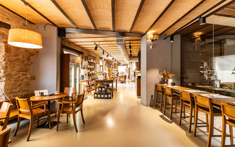 Espai de 300m2 modern i acollidor, on podreu degustar i comprar els nostres productes, prendre un cafè o visitar una de les exposicions. També trobareu formatges, embotits, mel...