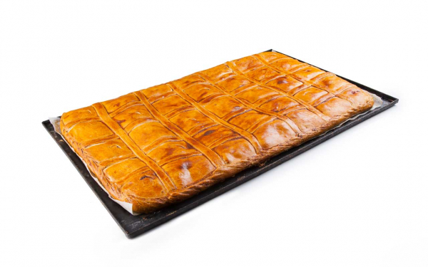 Productos dulces y salados: cocas variadas, pasteles de cumpleaños, empanadas, cocas de recapte, panecillos y croissants rellenos.